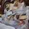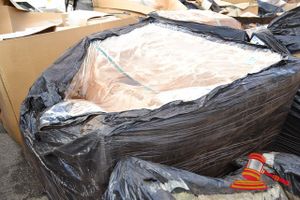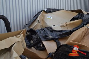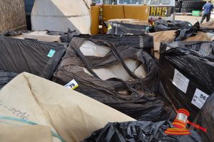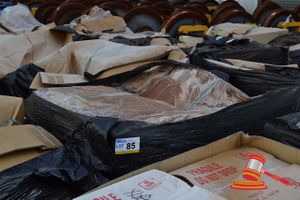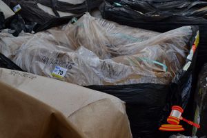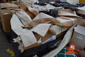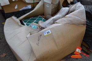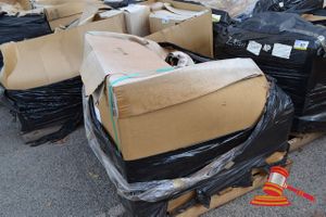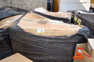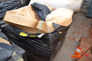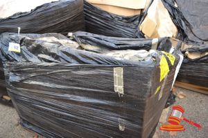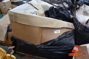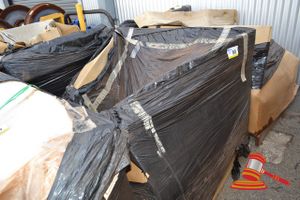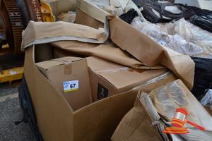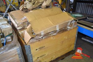 PALLET OF LARGE ELECTRICAL BRUSHES AND MIXED PARTS