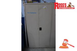 2 Door Metal Storage Cupboard, Approx: 900mm x 400mm x 1800mm, with contents including: 2 x Sound Meters, 2 x Window Tint Meters, Airbag Kit, ECU Programnmer, Metal Letter and Number Stamps and other Miscellaneous Items