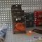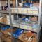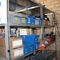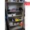 Metal Storage Rack, Approx: 920mm x 385mm x 2440mm with Lithium Charging Ports and Tins of Turpentine, Thinners, Primer. Note: Other Items / Hand Tools Not Included