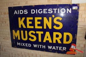 Keen's Mustard Sign, Metal, Enamel Finished, Approx: 1830mm x 1220mm, Attached to Wall (Buyer to Remove)
