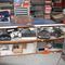 5 Tier Timber Laminate Bookcase with Miscellaneous Items and 1 x Jack Daniels Racing Banner and 1 x Ferrari Racing Banner