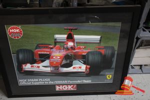 NGK Spark Plugs Framed Ferrari Formula 1 Team Print; and Ferrari Boarded Poster